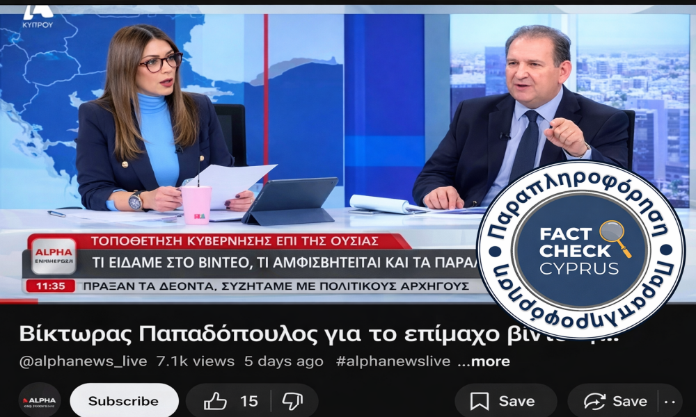 On January 9th, deputy government spokesperson Victoras Papadopoulos, as Fact Check Cyprus states, appearing on Alpha TV's noon current affairs programme, was asked to comment on the Christodoulides-Chrysochos relationship.